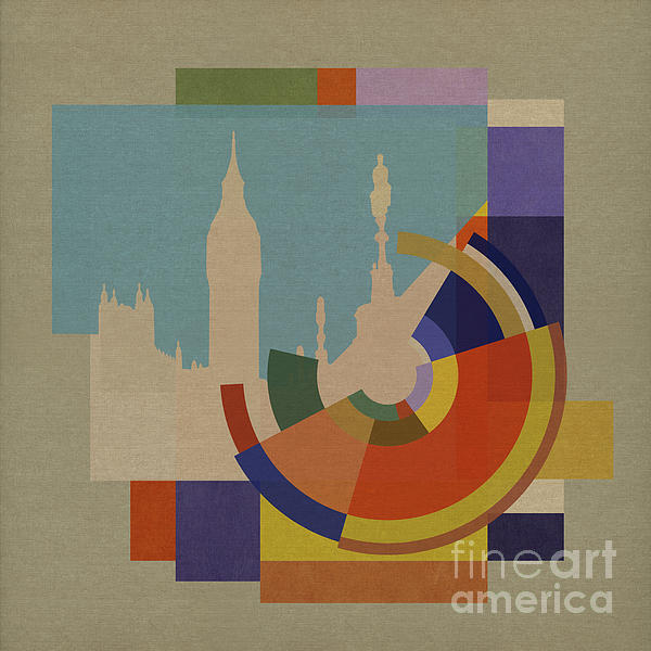 London - Capital Squares Series - High Resolution, Geometric, Photographic composition with digital painting and displacement effects set against a hessian, canvas, textured fabric background.